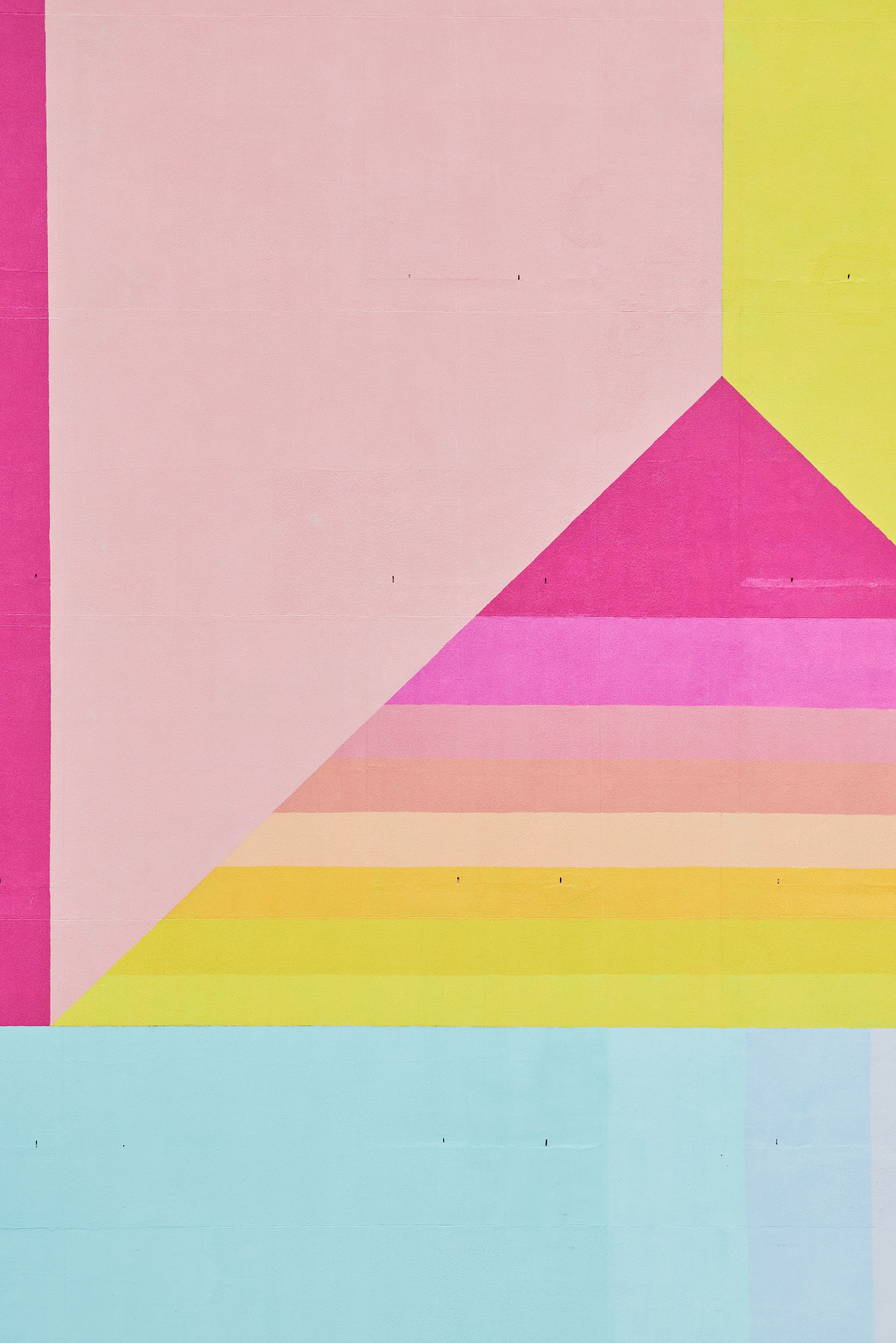 The artist chose the door as he feels a symbol rich in positivity is needed now, more than ever. The idea is that each trapezium cascades towards the next, from building to building, in perpetuity. Like a door opening and closing, geometry draws the public out from the cold and into the warmth that safety and shelter provides.